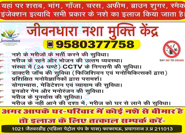 जीवधारा नशा मुक्ति केंद्र में आपका स्वागत है।